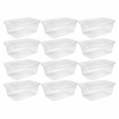 When clutter threatens to take over your space, reign it in with help from this 12-Pack of Rubbermaid Cleverstore 6-Quart Plastic Storage Containers. These clear storage bins make it easy to organize your things and see exactly where they are. With a 6-quart capacity, these clear storage containers are great for storing small items like art supplies, kitchen spices, hats and gloves, toys, office supplies, and more. The storage box’s shape is ideal for use as a shoe box too. You can easily see what you stored inside the bin thanks to its clear sides and lid. Each transparent plastic storage container comes with a lid for easy transport and convenient storage. Just snap the lid into place and your items stay safe inside the storage tote. The lid is recessed so you can easily stack storage bins in your closet, garage, or store room. Keep your items organized with this 12-Pack of Rubbermaid Cleverstore 6-Quart Plastic Storage Containers.