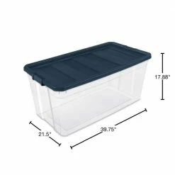 The Sterilite 64 Qt. Latching Box is a storage box that’s perfect for storing or transporting your stuff safely. The see-through base allows contents to be easily identified. Stack bases on top of each other for vertical storage. The tote has a capacity of 64 Qt. plenty of room. This latch storage box is ideal for storing small items in the basement, garage, and attic. The innovative latch design provides a rugged comfortable grip surface for securely latching the lid to the base. Get a durable storage solution that allows to quickly identify the contents and always keeps them safe, the Sterilite 64 Qt. Latching Box.
