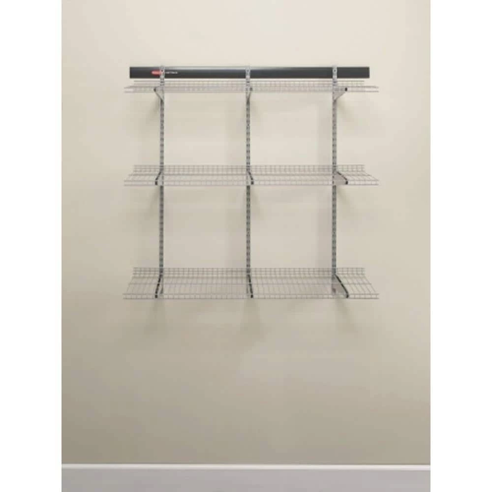 Get your garage or workshop neat and organized with the Rubbermaid FastTrack Garage Wire Shelf. Strong and sturdy, this wire shelf supports up to 350 lbs., making it ideal for large items such as heavy tools or storage bins, and is ventilated to help keep items dry. Featuring a powder-coated silver metallic finish that resists rust, chipping and cracking, this shelf requires FastTrack uprights and 3 brackets for easy installation.