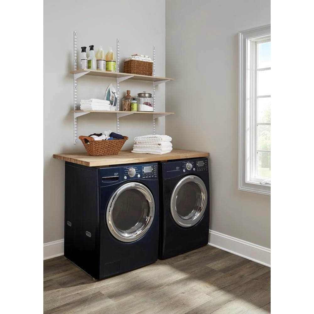 Rubbermaid’s Wood Shelves are perfect for organizing cluttered areas in your home while also adding a decorative touch. The laminate finish is wear resistant. Not recommended in areas exposed to water or heavy moisture.