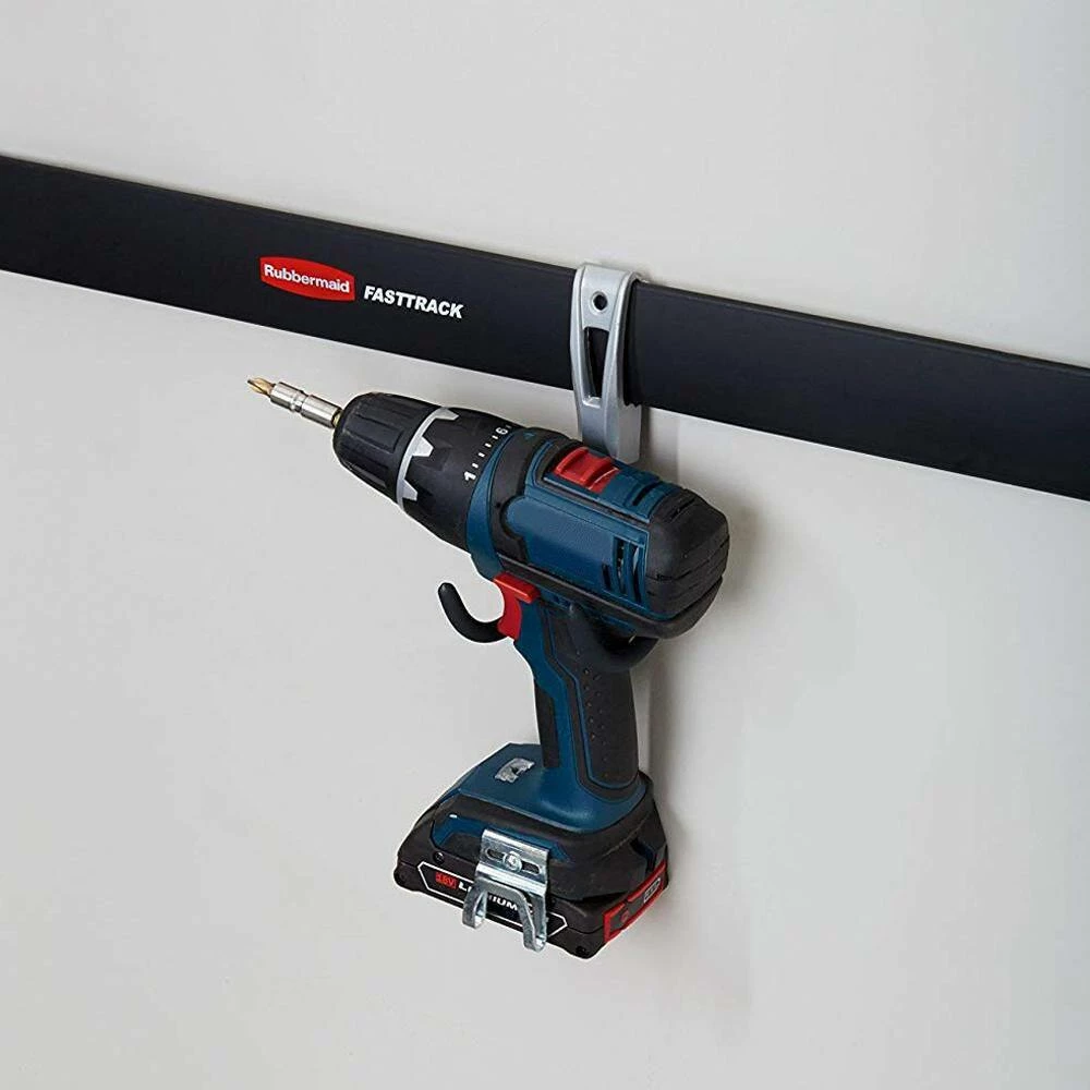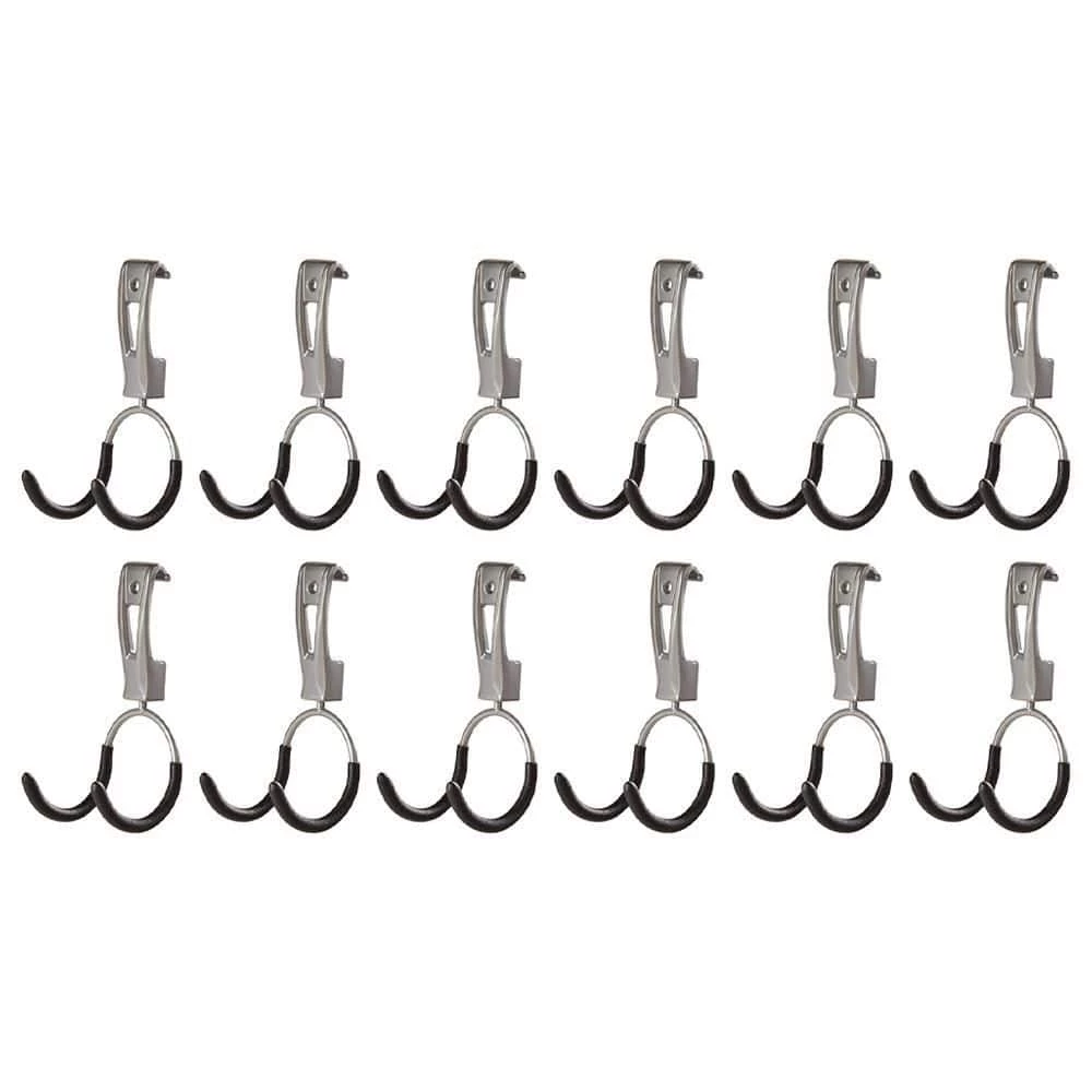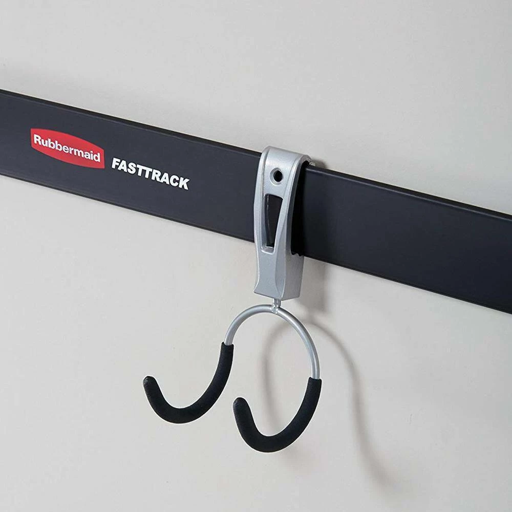 Get rid of the clutter in your garage and organize it with the Rubbermaid Metallic FastTrack Compact Hanging Garage Hook Organizers 12 pack. This wall hanger hook is perfect for ladders, ropes, drills, hammers, small hoses, bikes, tools, and more. The versatile design allows for the hook to quickly snap into place on the FastTrack garage wall mounting rails (sold separately). The garage storage hooks feature a soft grip coating that protects all your tools for nicks, scratches, or dents. To add more strength the garage storage hangers, have a powder coated finish for maximum durability that resists rust, chipping, and cracking. The garage storage organizers are sold individually and safely hold up to 25 pounds when installed properly. Have your garage ready for any season with the Rubbermaid Metallic FastTrack Compact Hanging Garage Hook Organizers 12 pack.